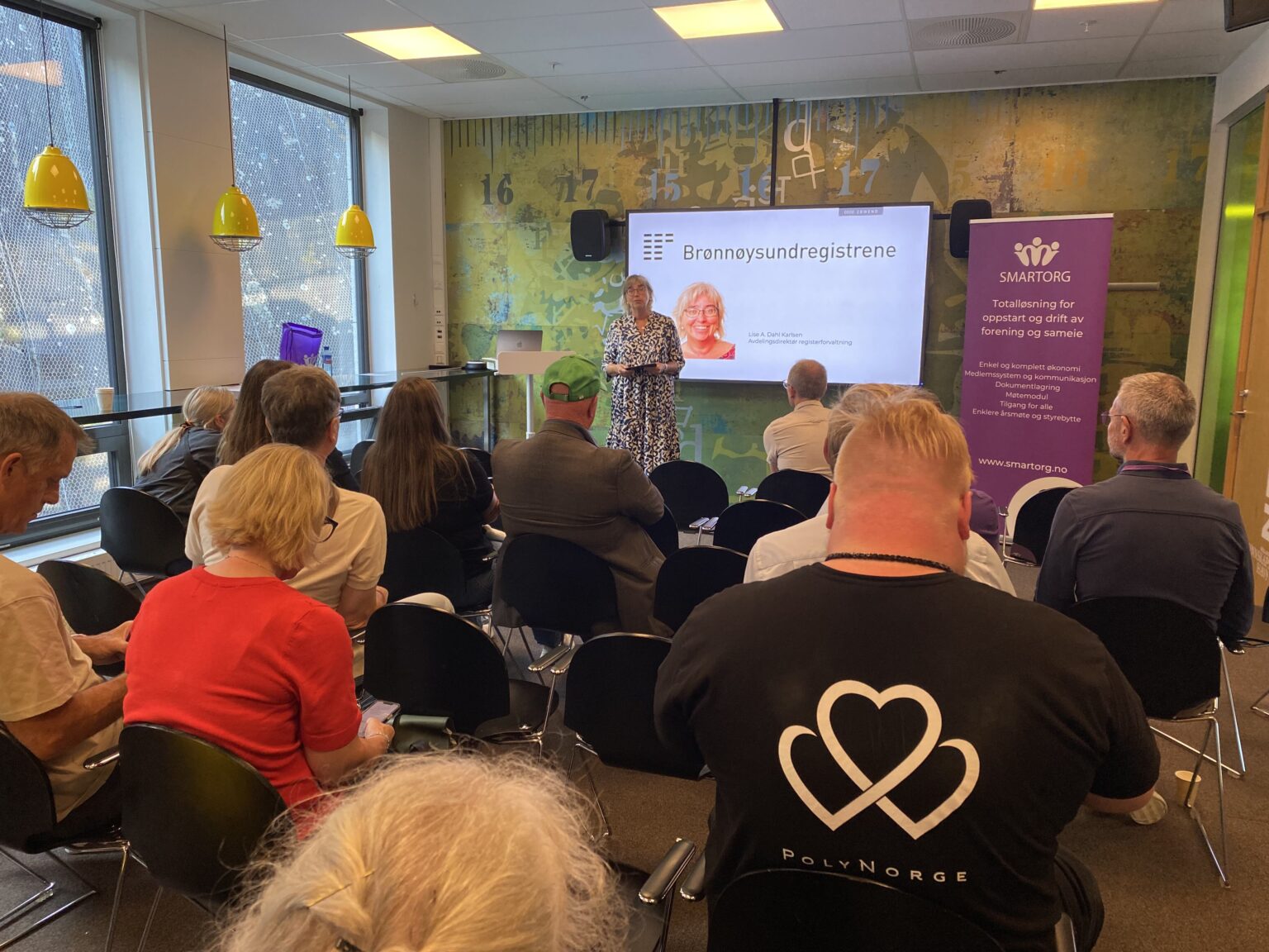 Lise A. Dahl Karlsen, avdelingsdirektør i Brønnøysundregistrene, informerte om kommende endringer i Frivillighetsregisteret, blant annet at varamedlemmer snart registreres, og at alle skal få beskjed når de legges inn i et styre i registrene.